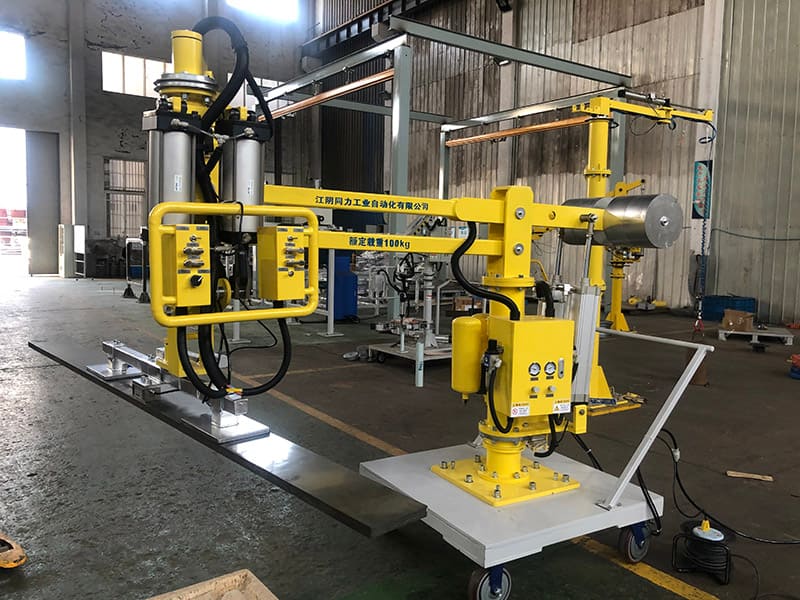 It can handle workpieces and products of various shapes and weights. For example, bags, carton boxes, chemical barrels, oil drums, large rolls of plastic rolls, glass, plates, air conditioners, condensers, compressors, metal castings, molds, sand cores, car tires, front wall, skylights, Dashboard, cylinder head, etc. The fixtures of each manipulator are specially designed and manufactured according to the customer's specific conditions.
